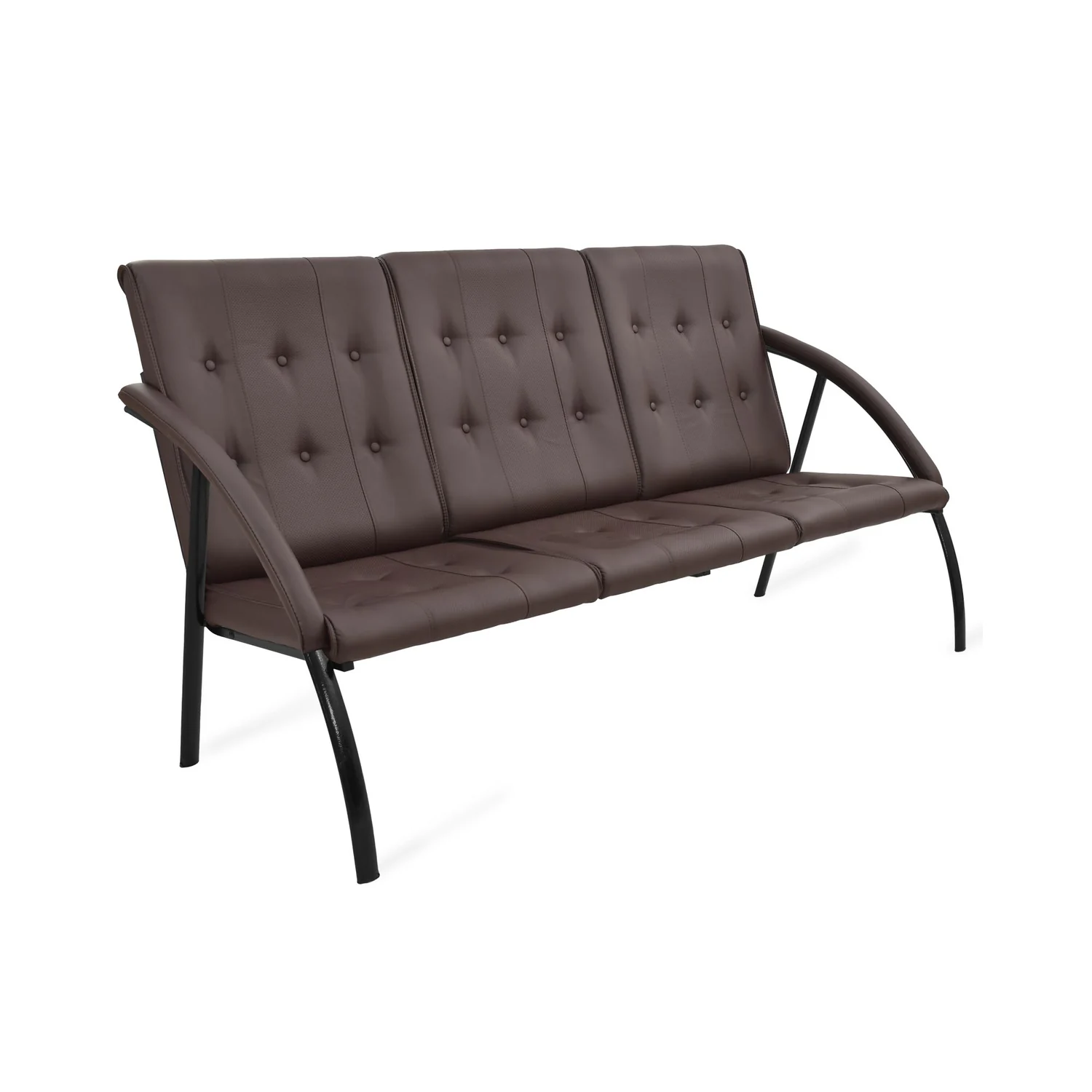 Каркас дивана выполнен из прочного металла, что обеспечивает устойчивость конструкции и длительный срок эксплуатации даже при интенсивной нагрузке. Обивка из кожзаменителя отличается износостойкостью и проста в уходе, поэтому диван подходит для помещений с большим потоком посетителей.