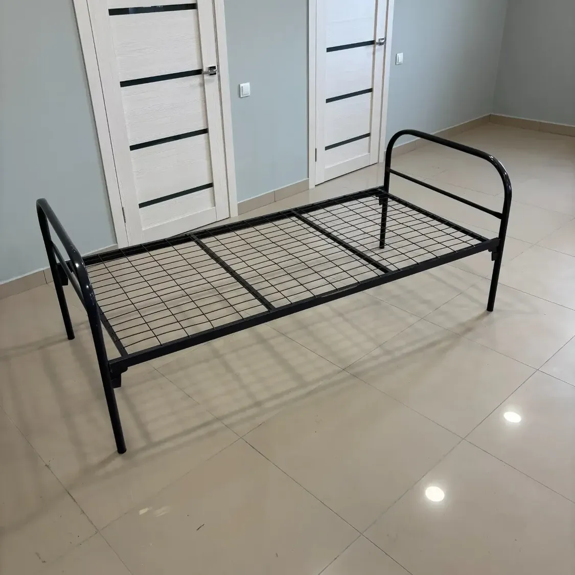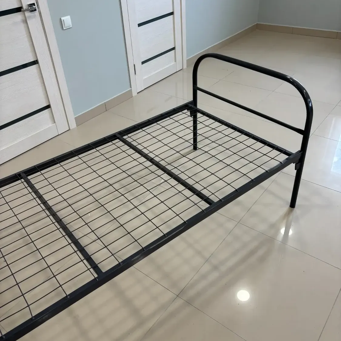 Толщина металла составляет 1,2 мм, что делает кровать достаточно крепкой для повседневной эксплуатации с нагрузкой до 120 кг.