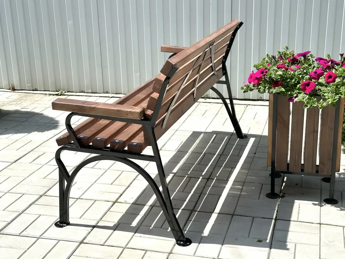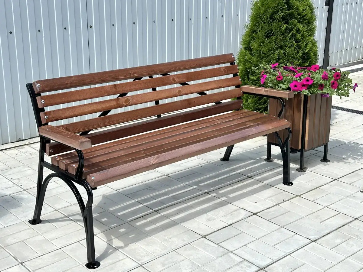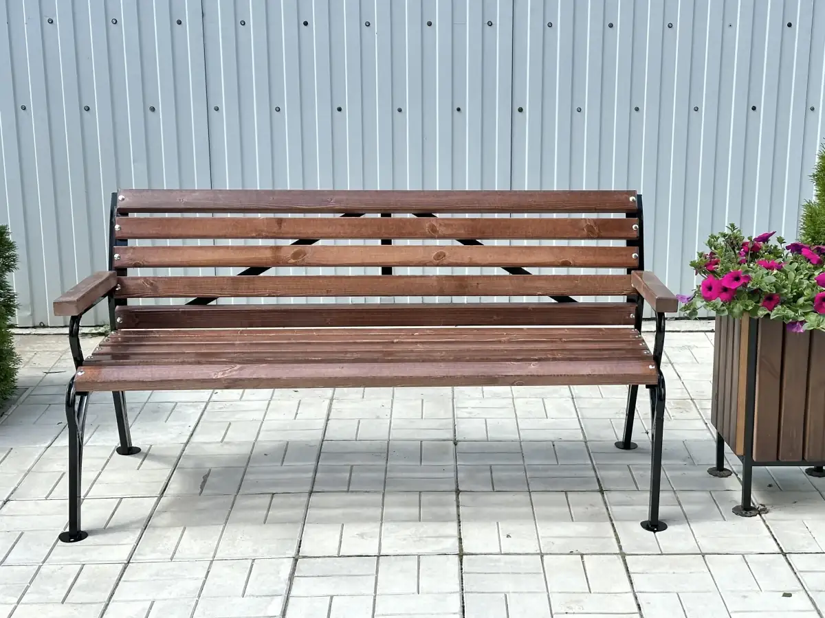Скамейка «Классика» с подлокотниками — это удобная, прочная и долговечная модель, разработанная специально для благоустройства уличных и общественных зон. Конструкция сочетает в себе металлический каркас повышенной жёсткости и натуральные деревянные планки, обработанные для длительного использования на открытом воздухе.